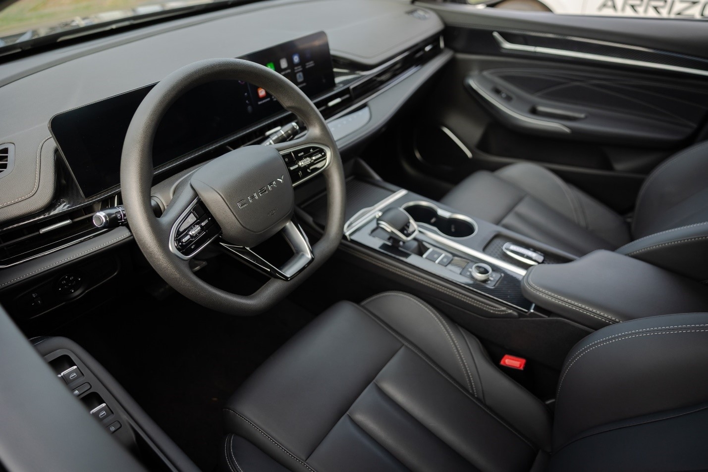 Интерьер Chery Arrizo 6 подчеркивает стремление бренда к современному стилю и удобству. В отделке использованы качественные материалы, включая экокожу. В комплектацию входят подогрев передних сидений, многофункциональный руль, электрический кондиционер с фильтром CN95 и двойной экран 10,25" – цифровая приборная панель и мультимедийная система с поддержкой беспроводного Apple CarPlay и Android Auto.
